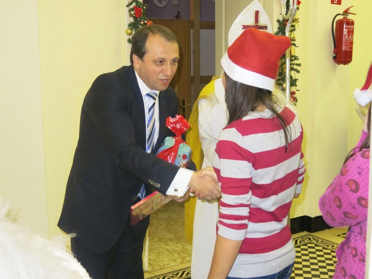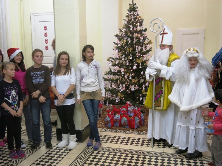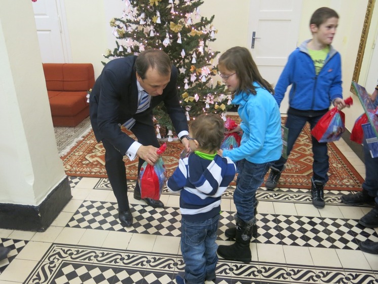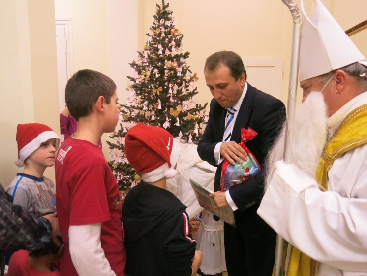 Štátny tajomník ministerstva práce, sociálnych vecí a rodiny SR Jozef Burian rozdal 6.12.2012 mikulášske balíčky deťom v detských domovoch v Pečeňadoch a Kolíňanoch.