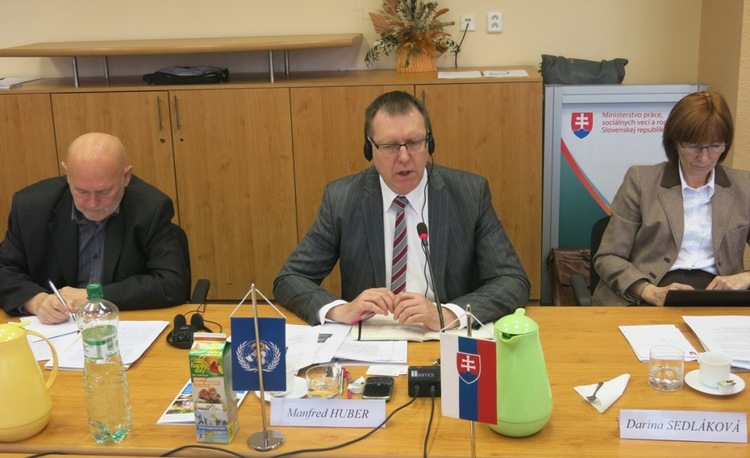 Na stretnutí s generálnou riaditeľkou sekcie sociálneho poistenia a dôchodkového sporenia Janou Kolesárovou, zástupcami ministerstva a prizvanými hosťami hovorili o otázkach súvisiacich s prípravou Národného programu aktívneho starnutia 2014 - 2020, najmä v oblasti zdravotnej starostlivosti a sociálnych služieb. Manfred Huber, na základe svojich dlhoročných skúseností a poznatkov z iných štátov, zhodnotil súčasné návrhy a odporučil vecné aj formálne smerovanie pripravovaného programu. Zo stretnutia vzišiel záver, že je potrebná užšia medzirezortná spolupráca medzi MPSVR SR a MZ SR nielen pri príprave Národného programu aktívneho starnutia 2014 - 2020, ale aj pri následnom realizovaní opatrení, ktoré z neho budú vyplývať a sú prierezového charakteru.