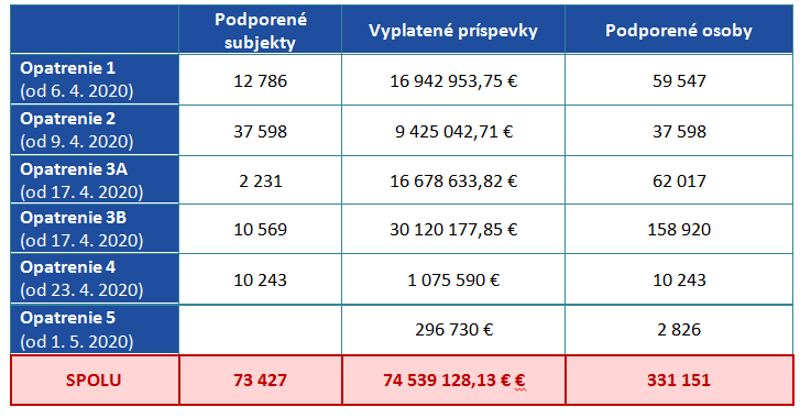 „Prvá pomoc pre zamestnávateľov a ich zamestnancov sa výrazne zrýchľuje, kým na začiatku pomoci mohlo trvať vyplatenie aj 15 kalendárnych dní, ku koncu výplat žiadostí za marec sa proces spracovania pomoci skrátil na týždeň,“ informoval kolegov minister práce, sociálnych vecí a rodiny Milan Krajniak. Vychádza zo štatistík, ktoré pripravil Inštitút sociálnej politiky MPSVR SR.