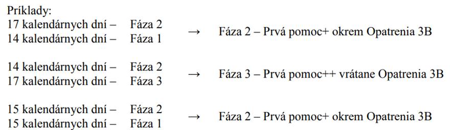 Covid automat je aktualizovaný na týždennej báze, avšak pre zjednodušenie systému vyplácania príspevkov sa schéma pomoci bude nastavovať na celý kalendárny mesiac. Pre určenie fázy Prvej pomoci bude rozhodujúci prevažujúci počet dní v danom stupni. V prípade rovnakého počtu dní v mesiaci sa použije výhodnejší model prvej pomoci. Medzimesačný prechod medzi jednotlivými fázami je možný najviac o dve fázy.