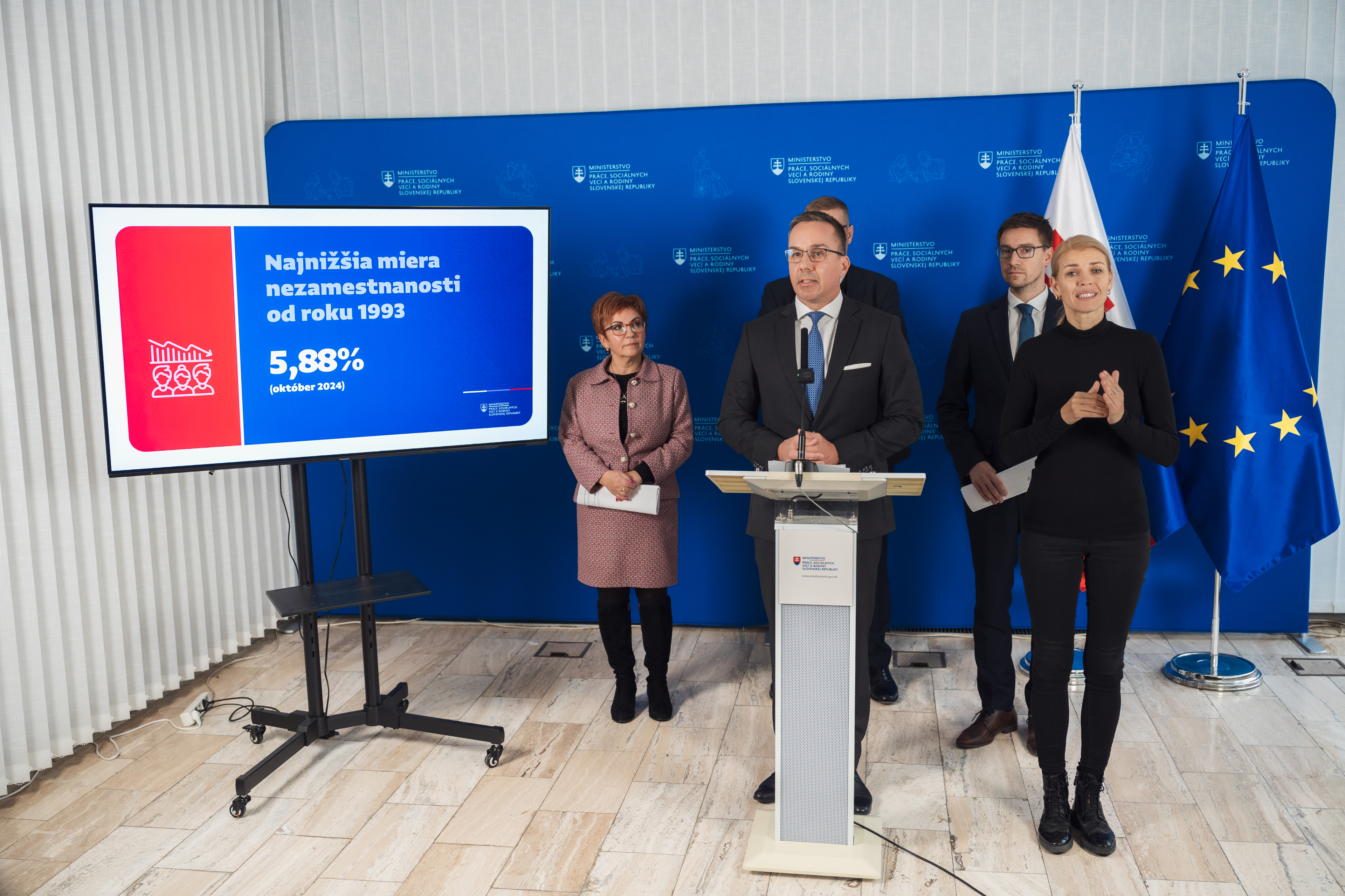 „Rezort práce prináša ďalšie dobré správy, pretože Slovensko dosiahlo v októbri historicky najnižšiu nezamestnanosť od svojho vzniku, teda od roku 1993. Pozitívny vývoj na trhu práce je aj výsledkom intenzívnej a systematickej práce za posledných 12 mesiacov. Spustili sme viacero projektov na podporu zamestnanosti, či už išlo o finančné stimuly, zručnosti pre trh práce, ale aj rôzne projekty financované zo štátneho rozpočtu či z Európskeho sociálneho fondu. Cez tieto programy sme od ich spustenia 1. mája 2024 vytvorili 7791 nových pracovných miest. Som naozaj veľmi rád, že najviac sa darilo projektom ako napr. Právo na prvé zamestnanie, pretože cez tento projekt sme vytvorili 1907 nových pracovných miest. Bol určený najmä pre mladých ľudí, resp. pre ľudí, ktorí na Slovensku nikdy nepracovali a ja sa veľmi teším, že sa tento projekt takto dobre uchytil a budeme v ňom samozrejme radi pokračovať,“ doplnil minister Erik Tomáš.