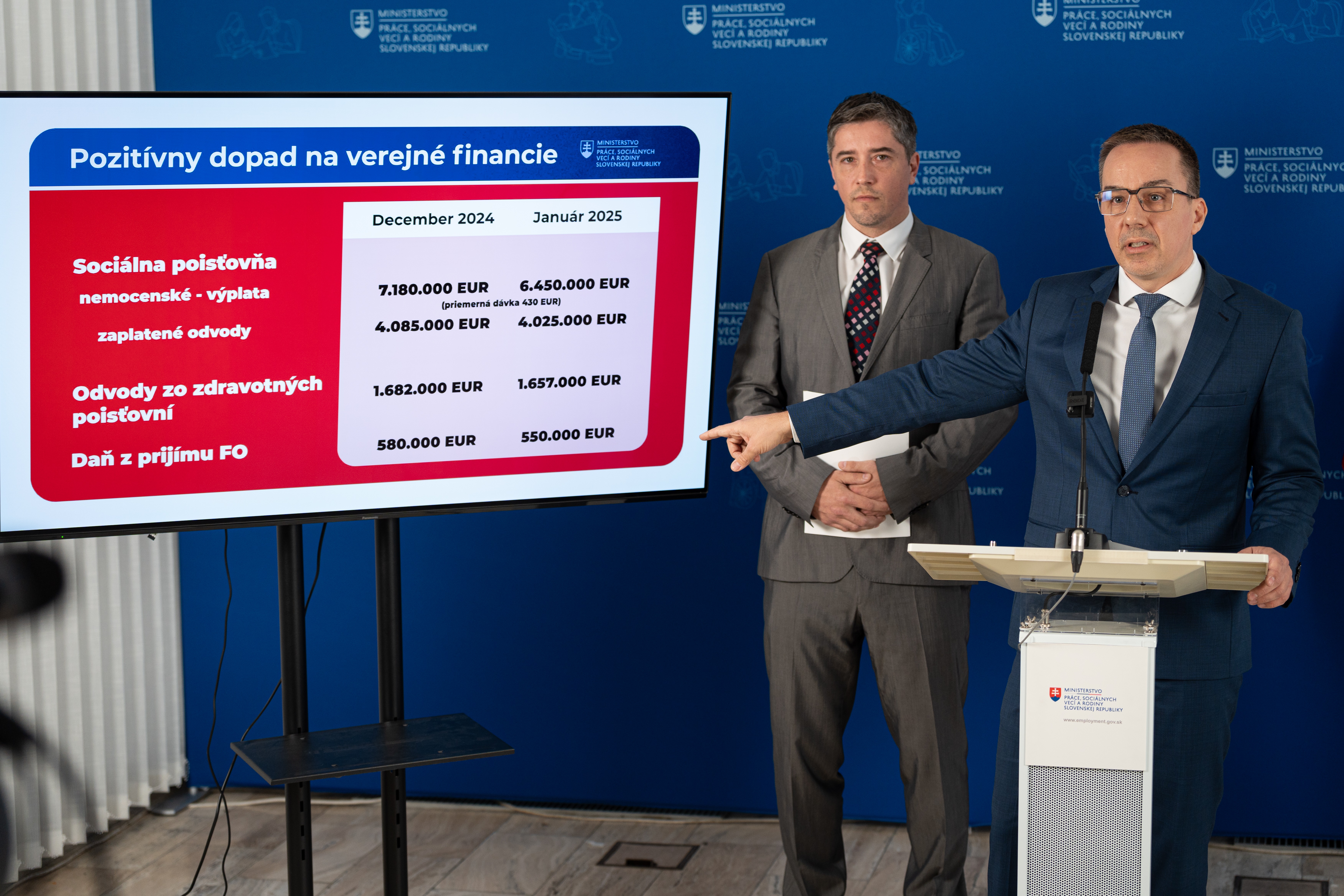 „Hlavným cieľom je zabrániť zneužívaniu dočasnej pracovnej neschopnosti a táto iniciatíva má už dnes konkrétne výsledky. V roku 2024 bola priemerná dĺžka PN na Slovensku 44 dní, pričom v Českej republike to bolo 31 dní. Ešte bizarnejšie sú však rozdiely medzi jednotlivými okresmi u nás, keď napr. najkratšia doba trvania PN-ky bola v okrese Rožňava za minulý rok, a to 27 dní, naproti tomu najdlhšia doba trvania PN-ky bola napr. v okrese Kežmarok 63 dní alebo Poprad dokonca 66 dní. Je úplne evidentné, že tento systém sa zneužíval. Už krátko po oznámení našej iniciatívy na jeseň minulého roka došlo k výraznému okamžitému poklesu počtu PN-iek na Slovensku, a to o niekoľko tisíc. Nie je to však len o zodpovednosti ľudí, lekárov, ale aj o zodpovednosti zamestnávateľov. Pretože takto ušetrené peniaze môže Sociálna poisťovňa použiť na vyššie dôchodky, vrátane invalidných dôchodkov a tiež upraviť svoje hospodárenie. Zdôrazním, že naša iniciatíva sa nijako nedotkne tých ľudí, ktorí PN-ku naozaj potrebujú,“ uviedol Erik Tomáš, minister práce, sociálnych vecí a rodiny SR.